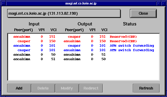 swctl_stat()- 現在ATM Switchに設立されているPVC及びUPCの情報を得る